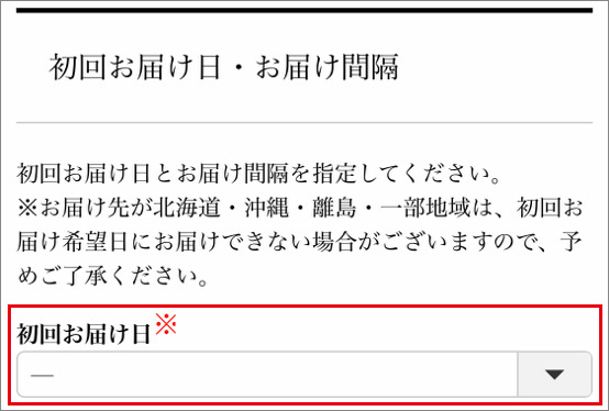 選択していただくと初回お届け日が表示されます。