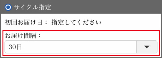 お届け間隔は「30日~90日」よりお選びください。